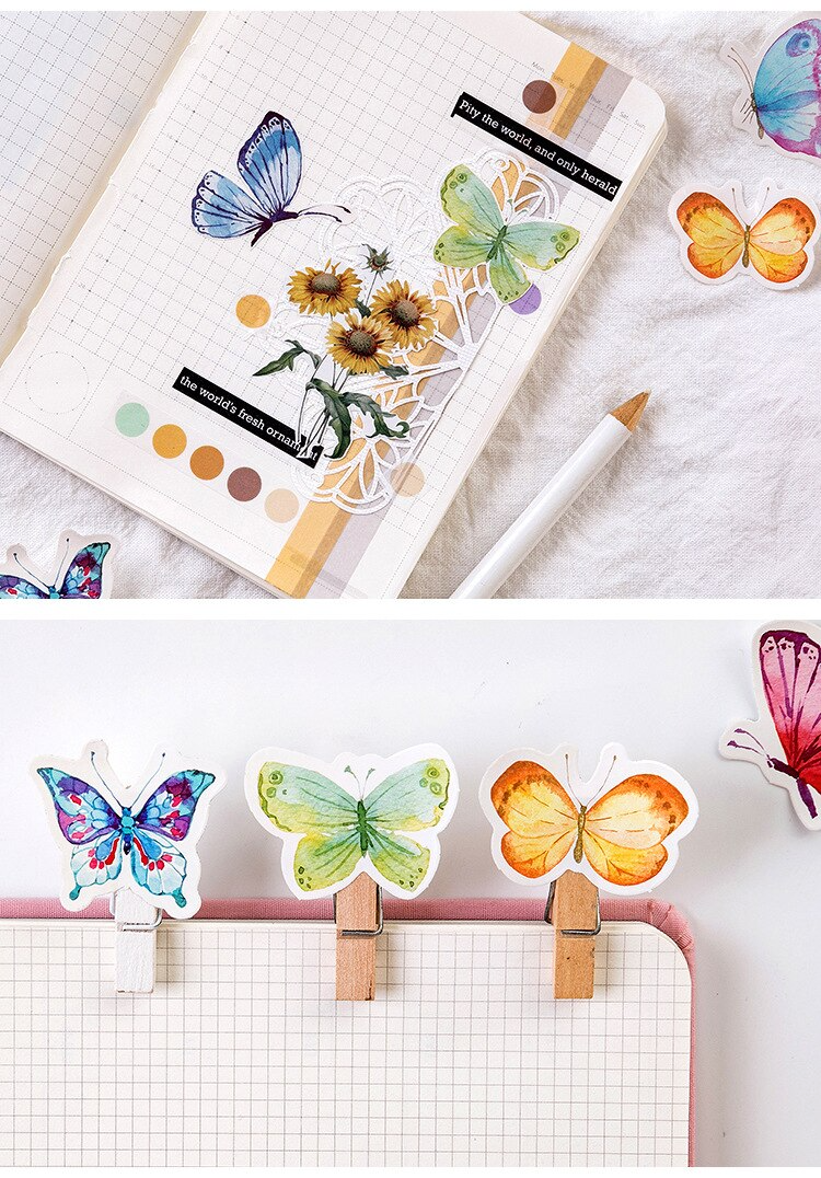 Cute little set of butterfly themed diecut stickers! Sent in a small cardboard pack (4x4CM) containing 45 stickers with different designs.
