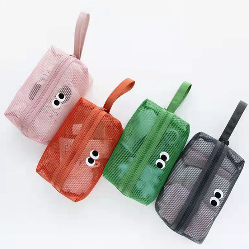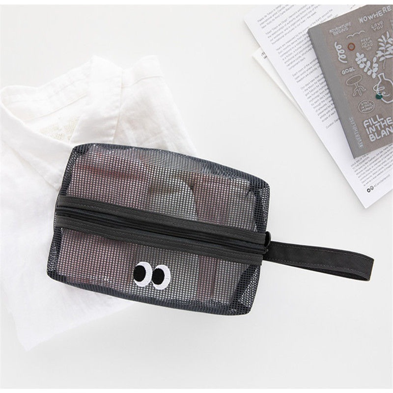 A stylish and durable storage solution, this Peeking Zipper Pouch is designed with a durable mesh exterior and embroidered cartoon eyes. Available in four colours, this pouch is perfect for organising and carrying small items safely and conveniently.