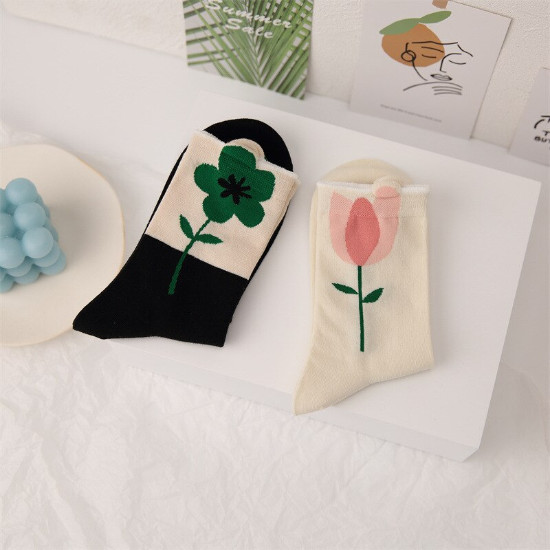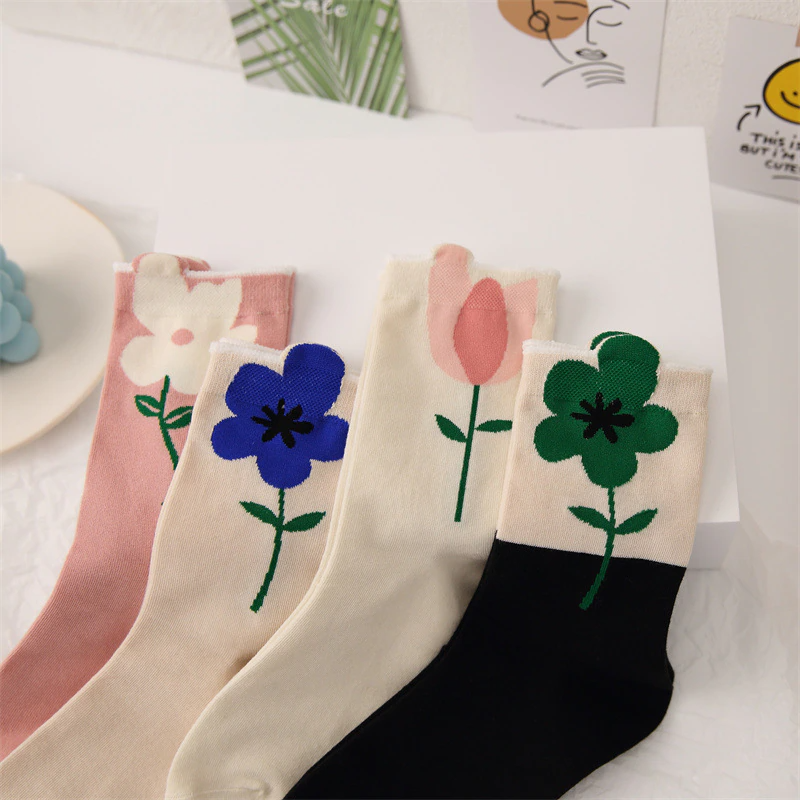 Peeping Leaf Flower Crew Socks (4 Designs)