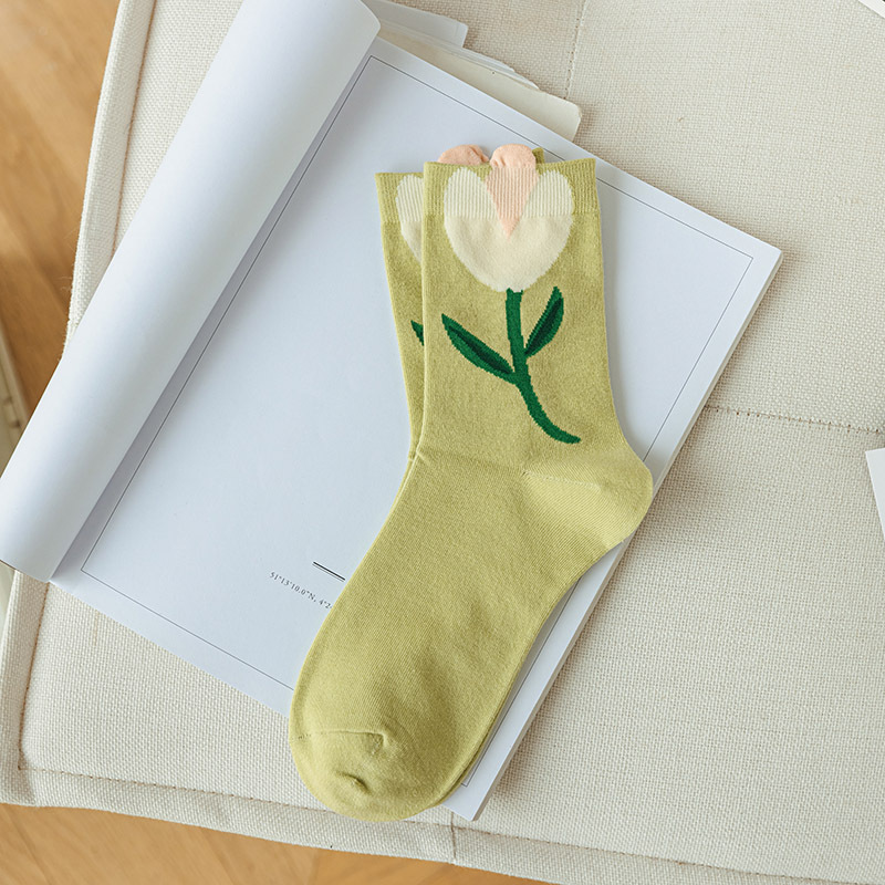 Peeping Leaf Flower Crew Socks (5 Designs)