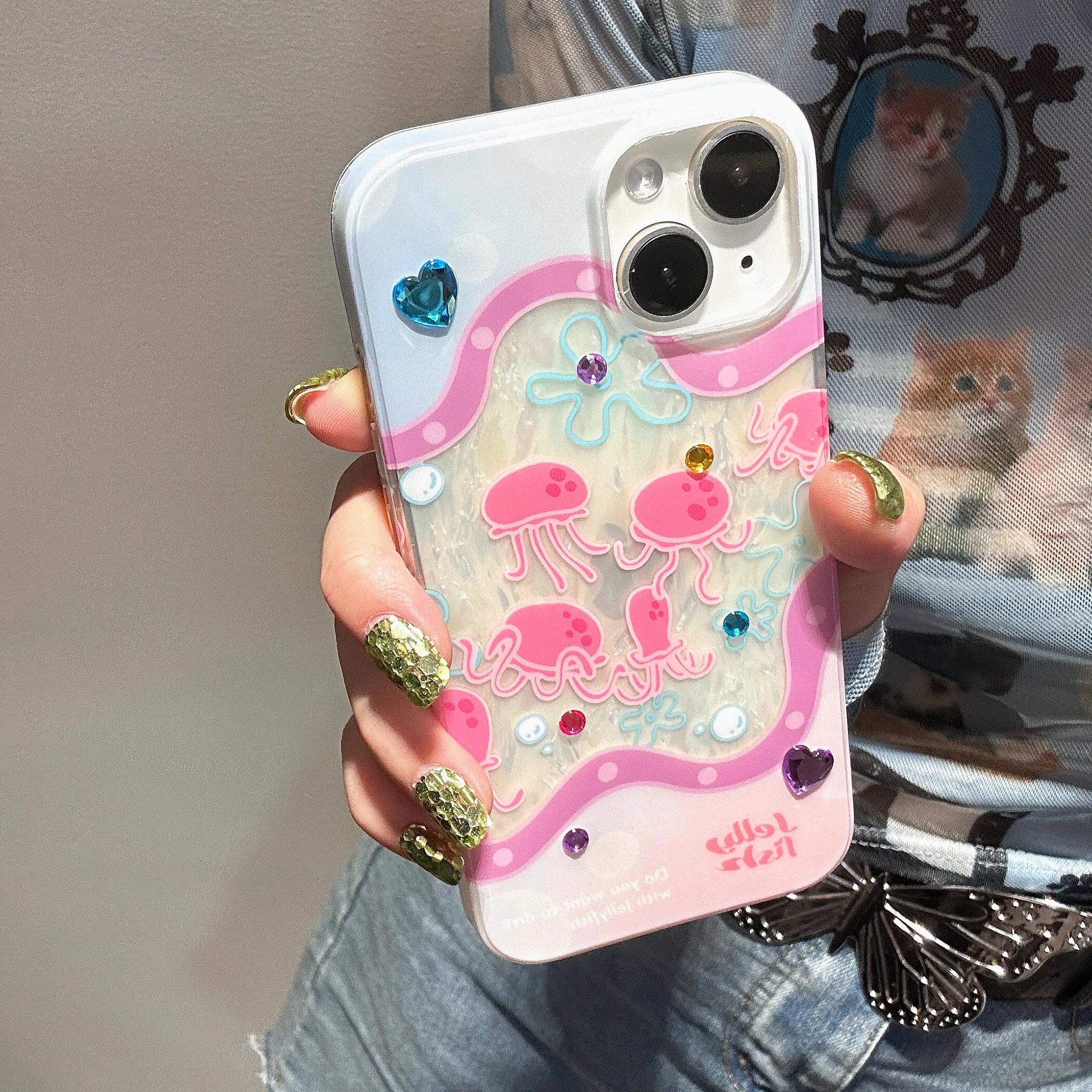 This lovely iPhone case has a pearlescent panel in pastel pink and blue, adorned with a stunning purple wave and elegant pink jellyfish design. It also includes a set of 3D gem stickers for you to personalize and make it uniquely yours! Protect your phone while also adding a touch of the ocean's beauty to it.