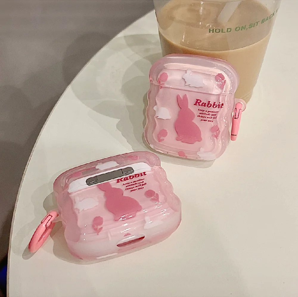 Don't let your AirPods blend in with the crowd! Add a playful touch with our Pink Rabbit AirPods Charger Case Cover. Featuring a cute pink rabbit design and lettering, keep your AirPods safe and stylish at the same time.