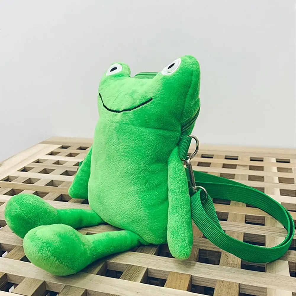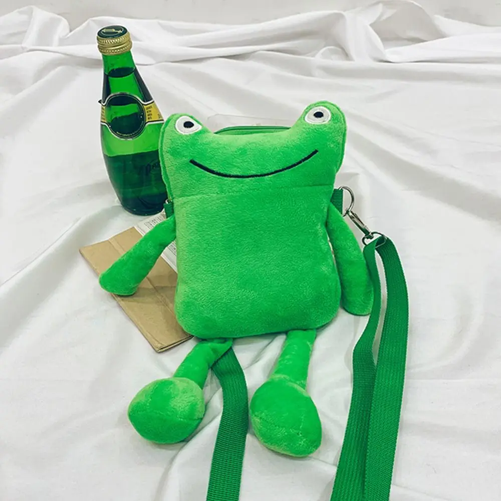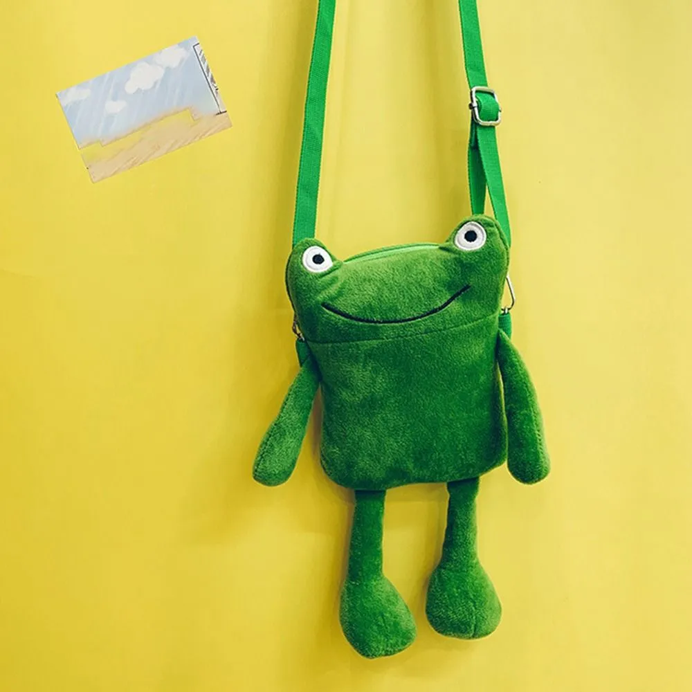 Hop around in style with this adorable Plush Frog Zipper Purse! Crafted with a cheerful smile and adjustable shoulder strap, this cute critter keeps your belongings safe and secure. Available in light and dark green, it's a hop, skip, and a jump away from looking totally fetch!