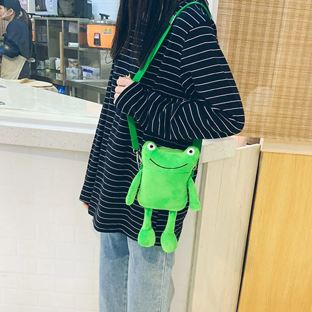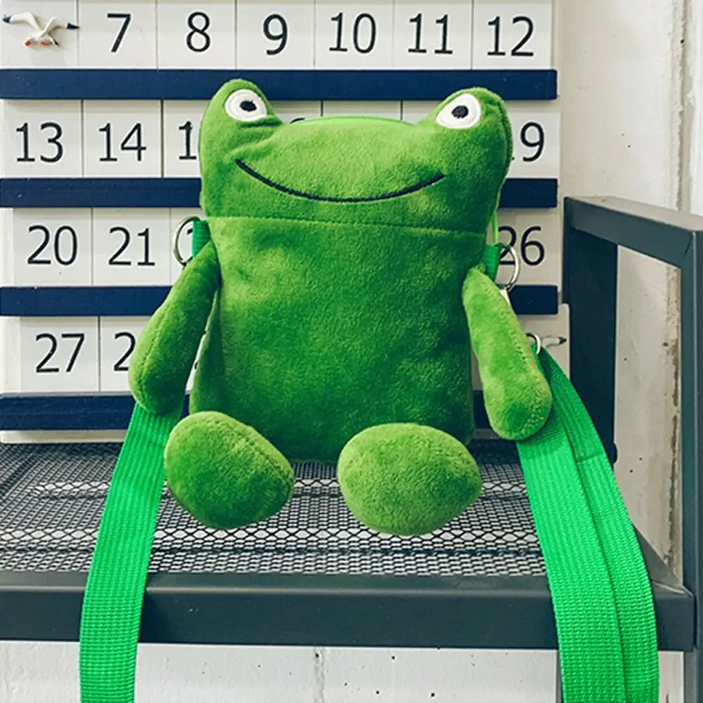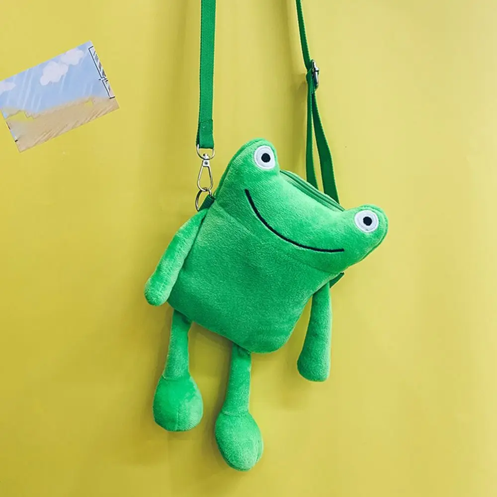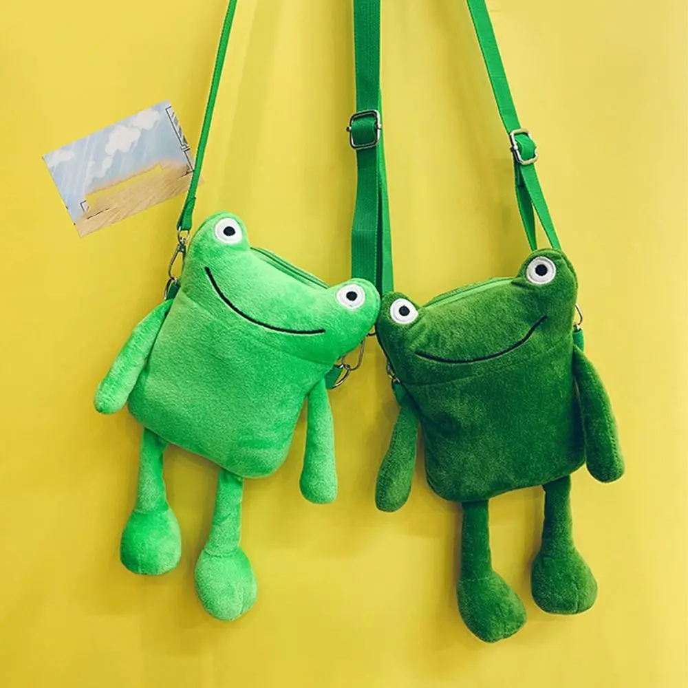 Hop around in style with this adorable Plush Frog Zipper Purse! Crafted with a cheerful smile and adjustable shoulder strap, this cute critter keeps your belongings safe and secure. Available in light and dark green, it's a hop, skip, and a jump away from looking totally fetch!