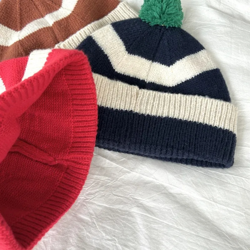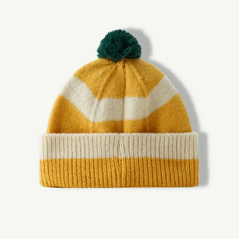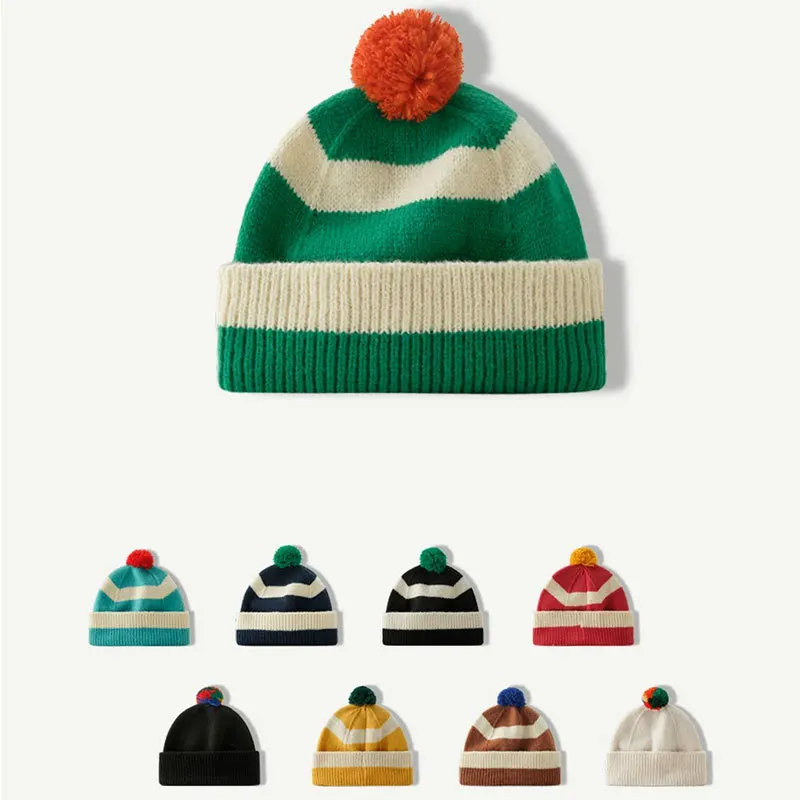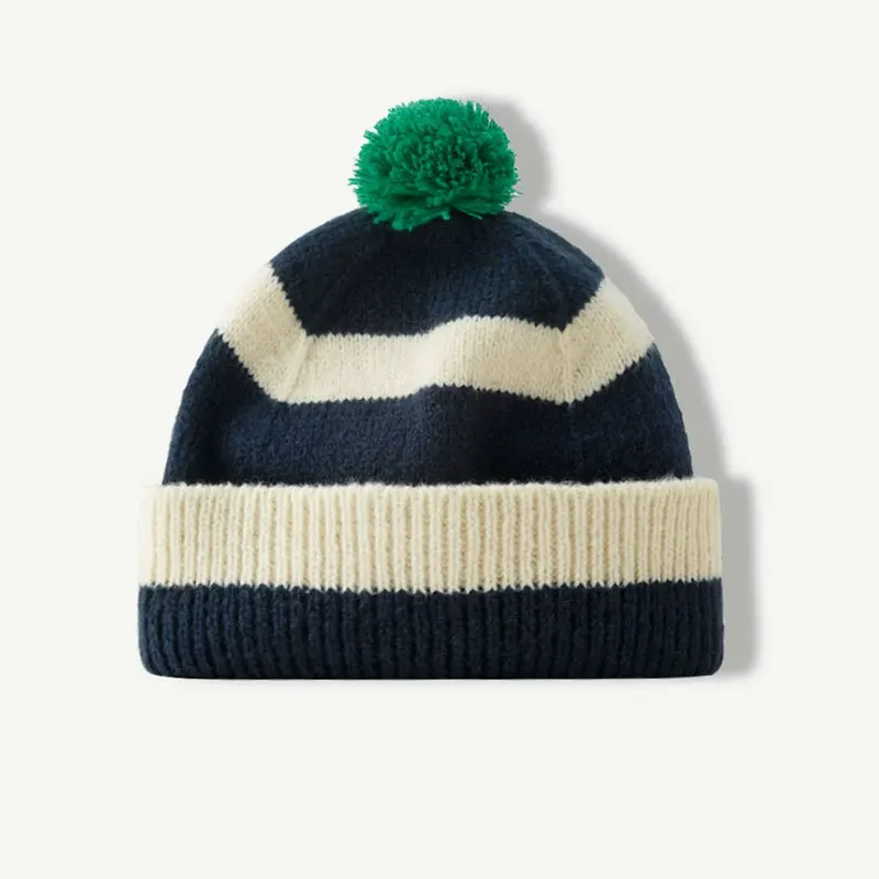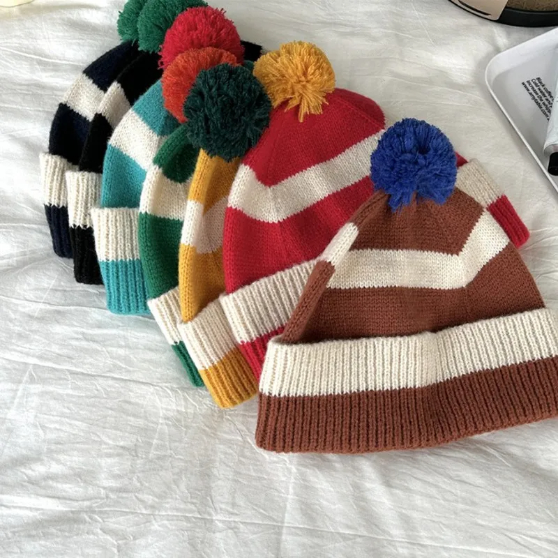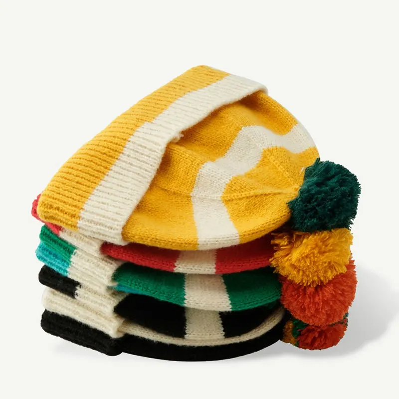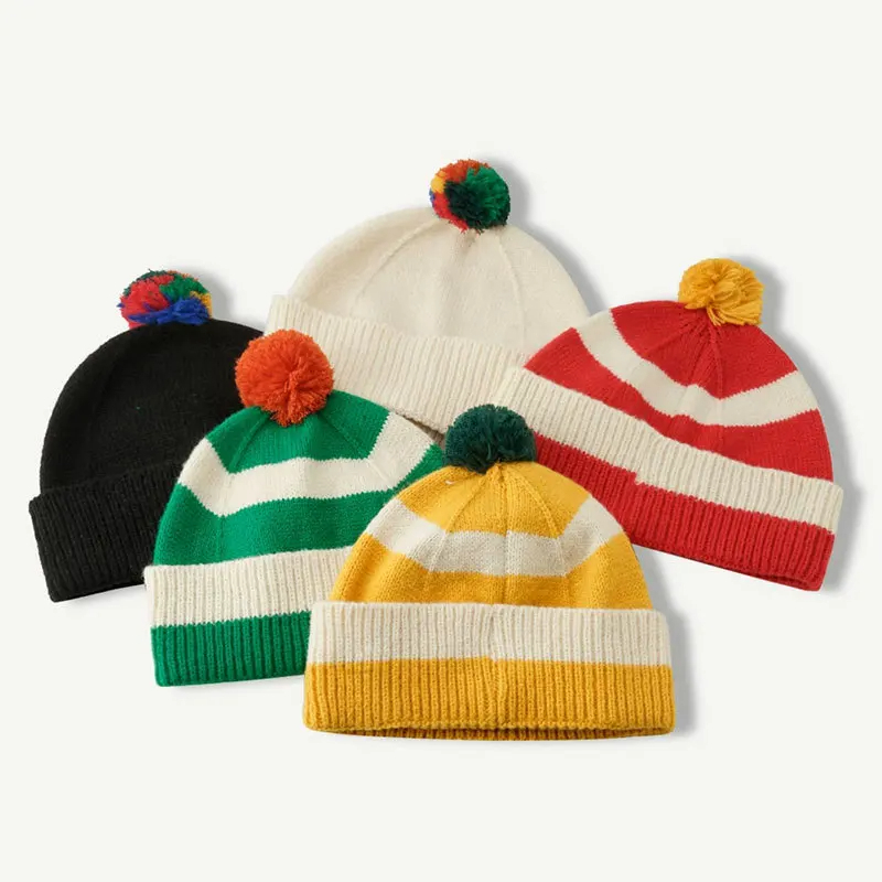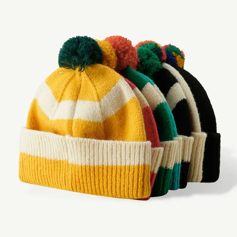 Pom Pom Striped Beanie Hat (9 Colours)