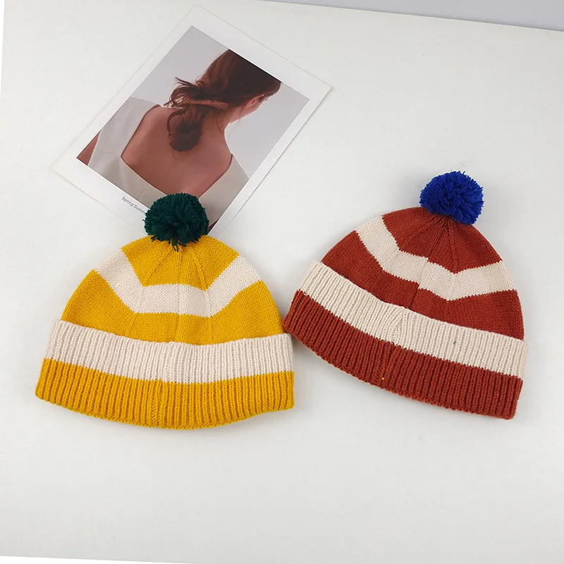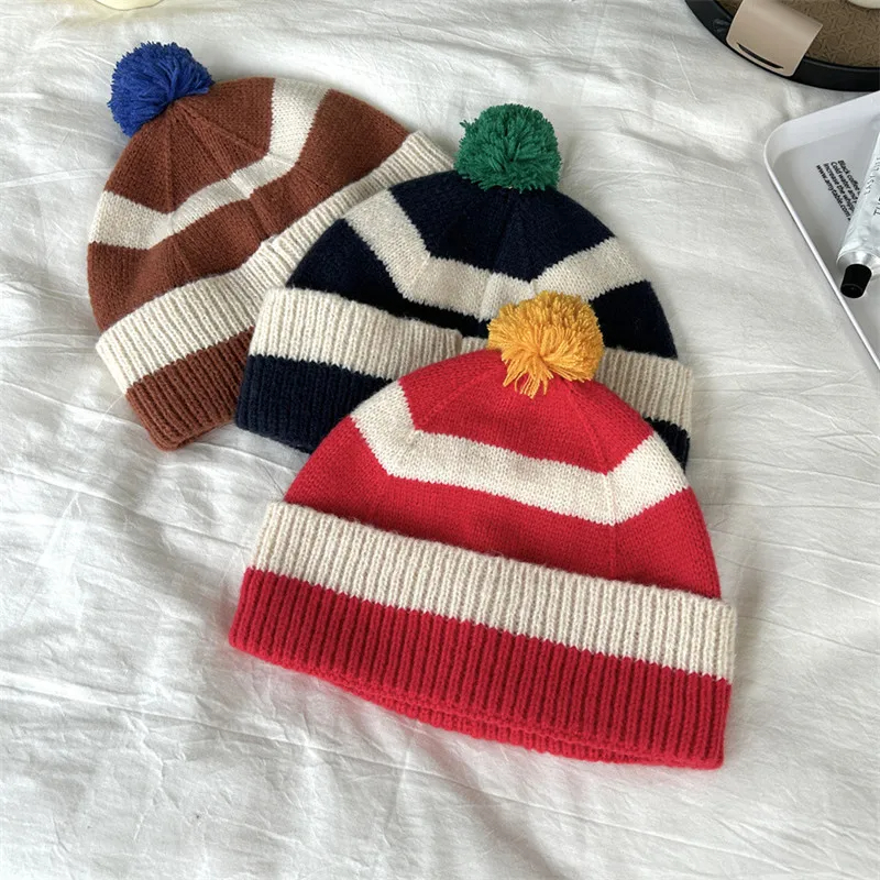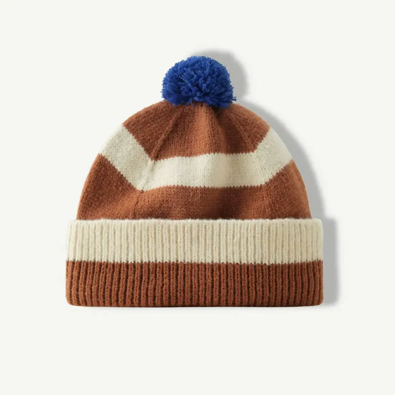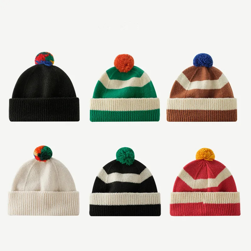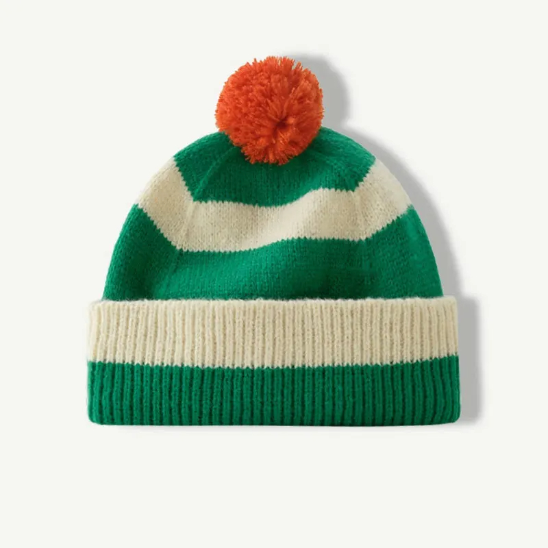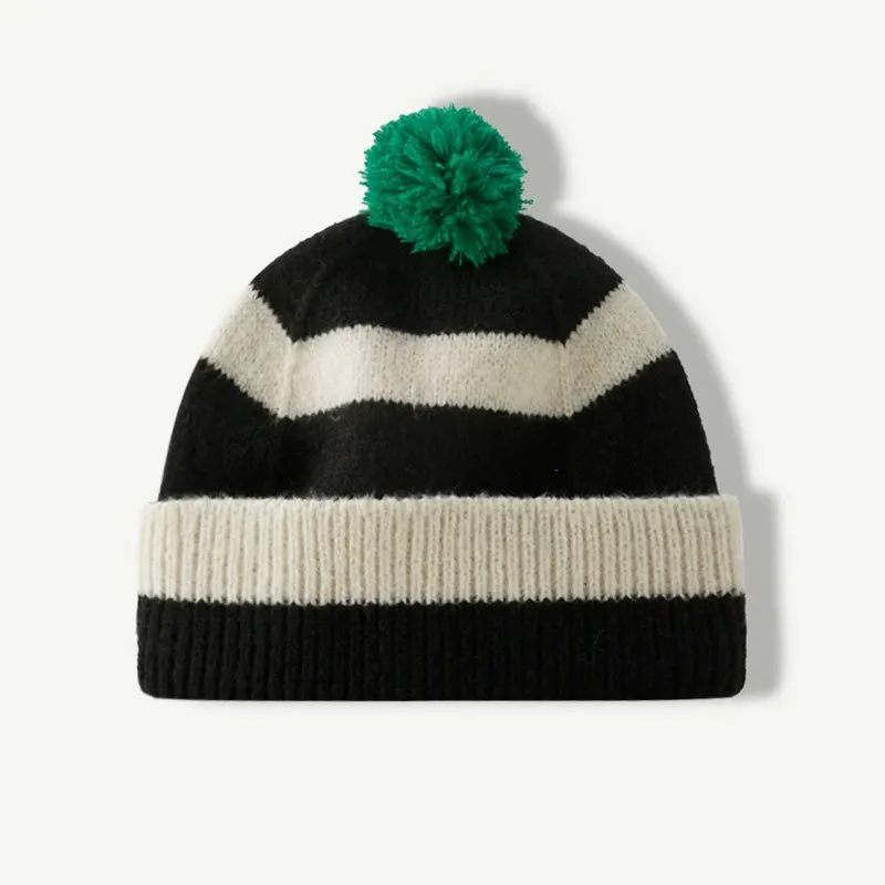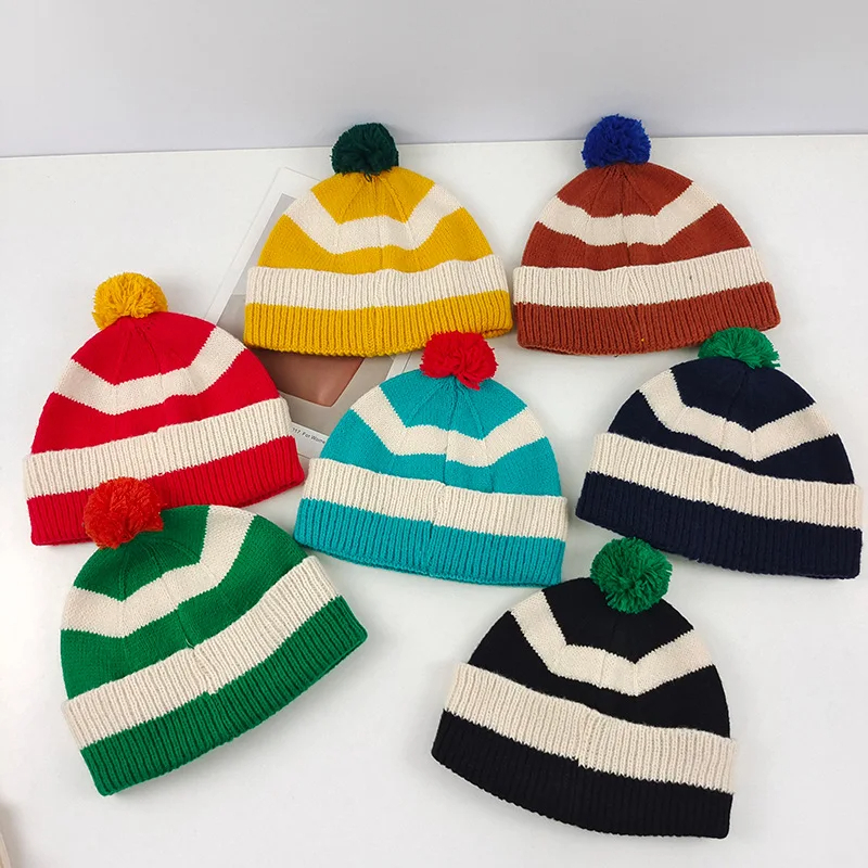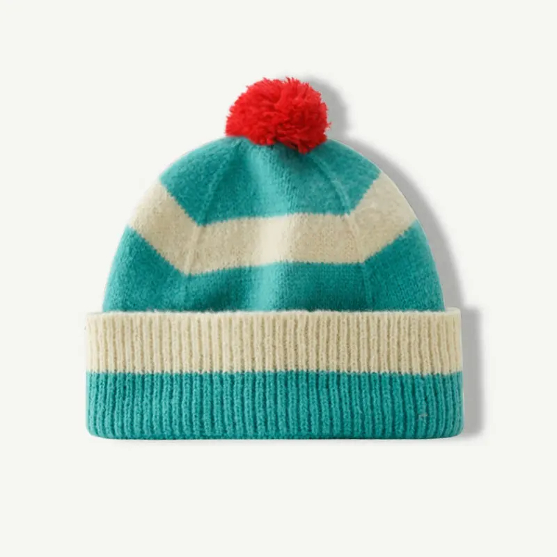 Pom Pom Striped Beanie Hat (9 Colours)