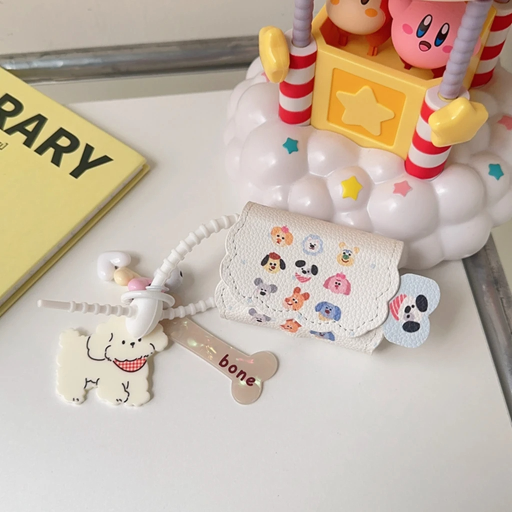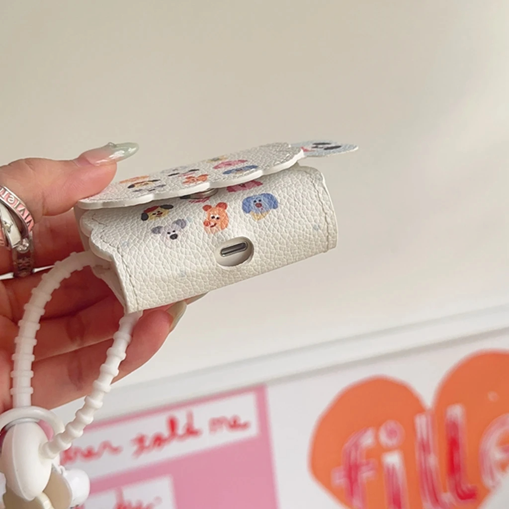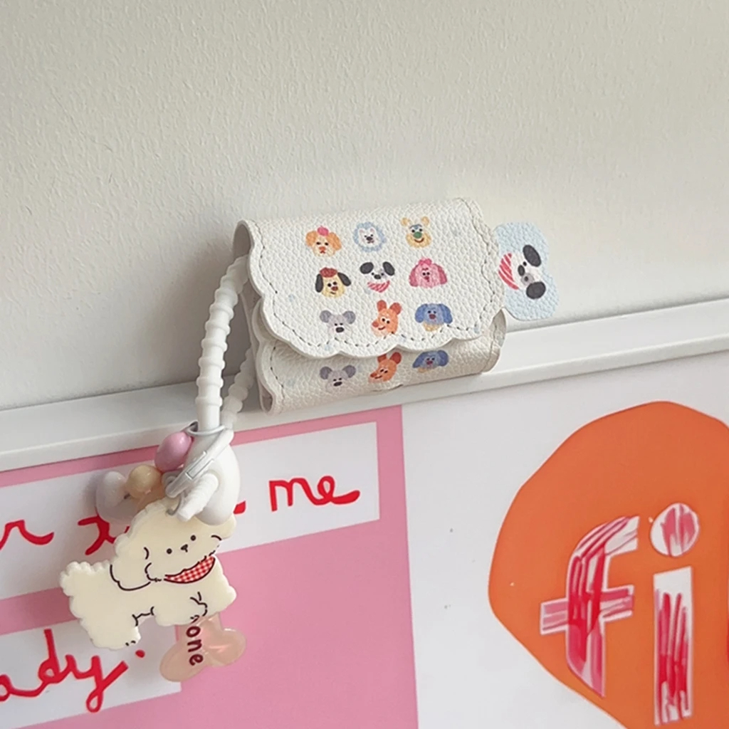Give your AirPods the protection and personality they deserve with this wacky wireless earphone charger case! Covered in cartoon dog faces, this case will add a playful touch to your everyday routine. Plus, an adjustable strap allows for easy carrying and even features cute bell, heart, bone, and puppy charms. It's a doggone good way to keep your headphones safe and stylish.