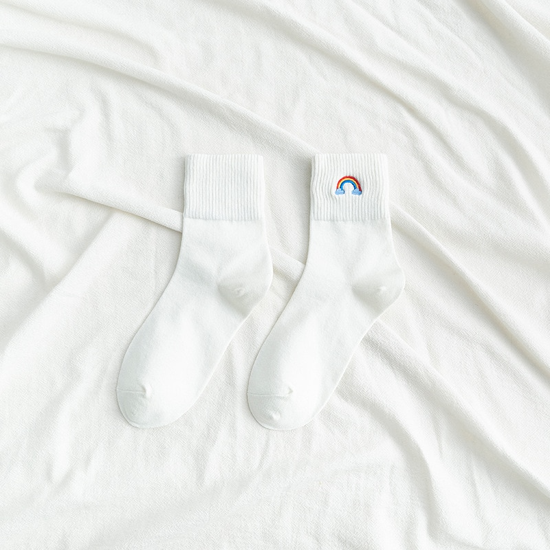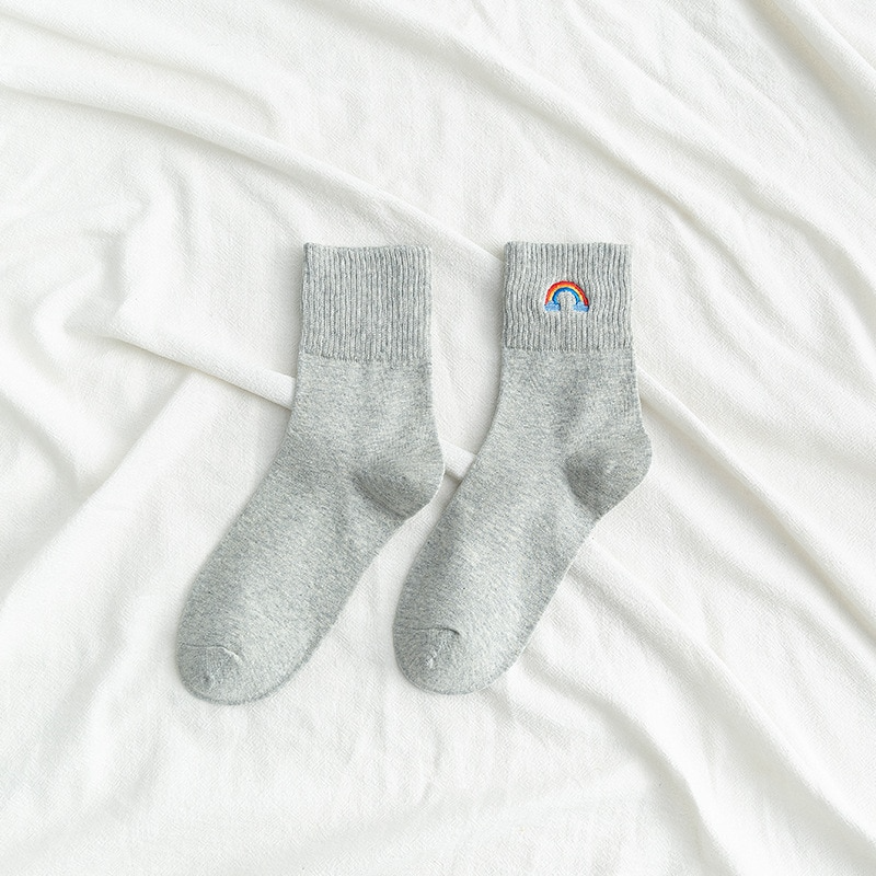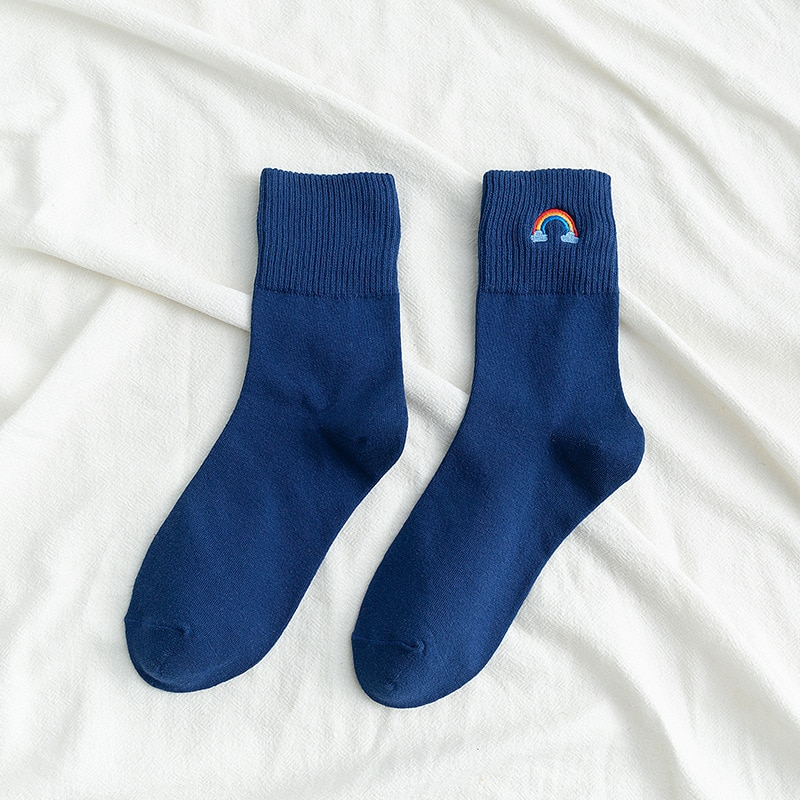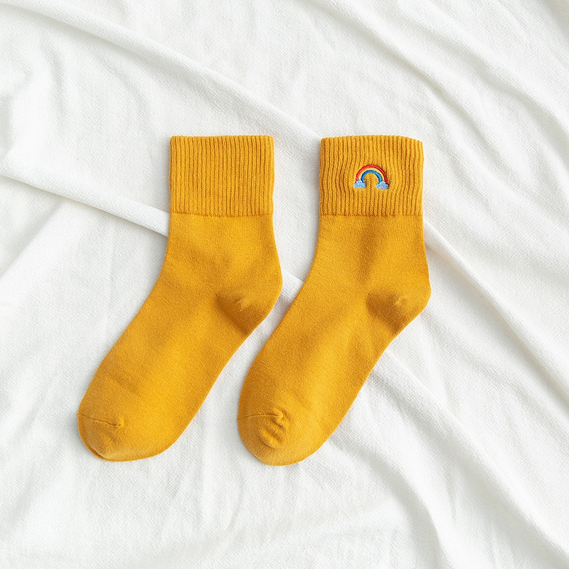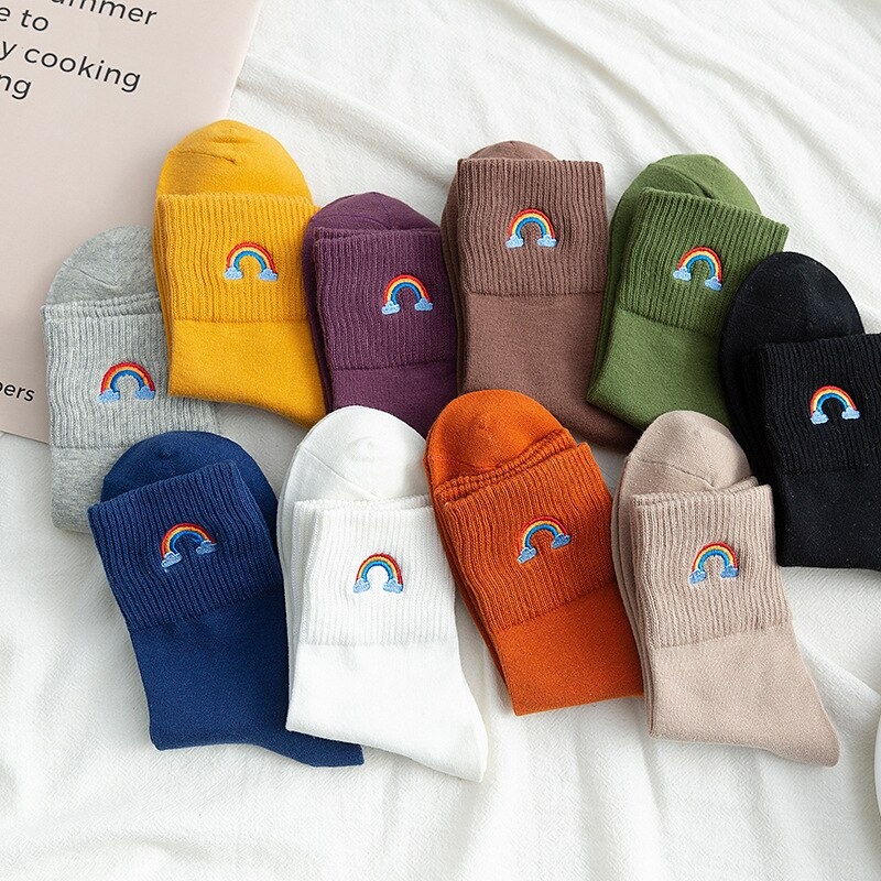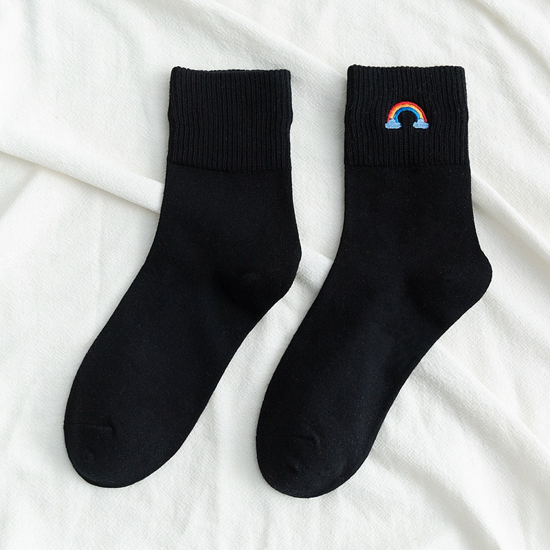 Ribbed socks with cute embroidered rainbow detail on the ankles. Will fit up to a size 39