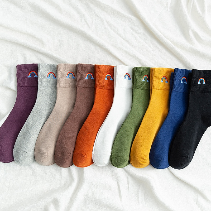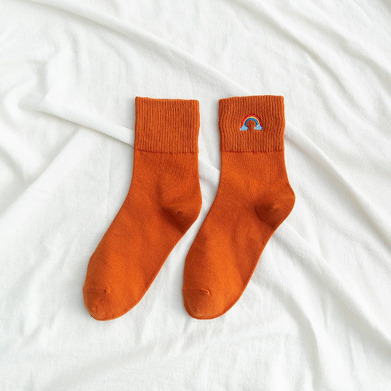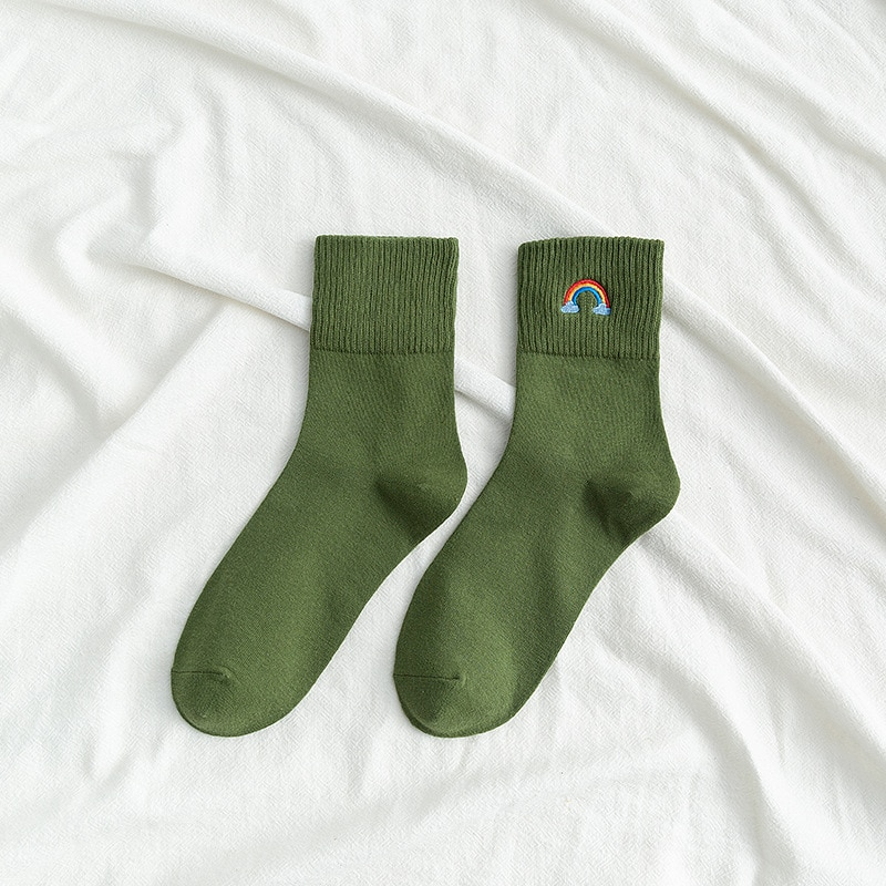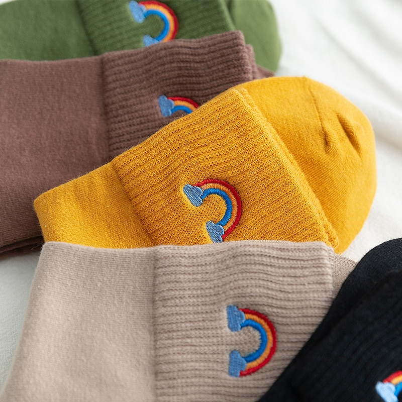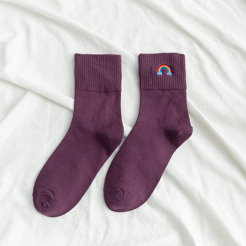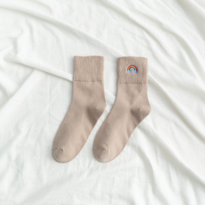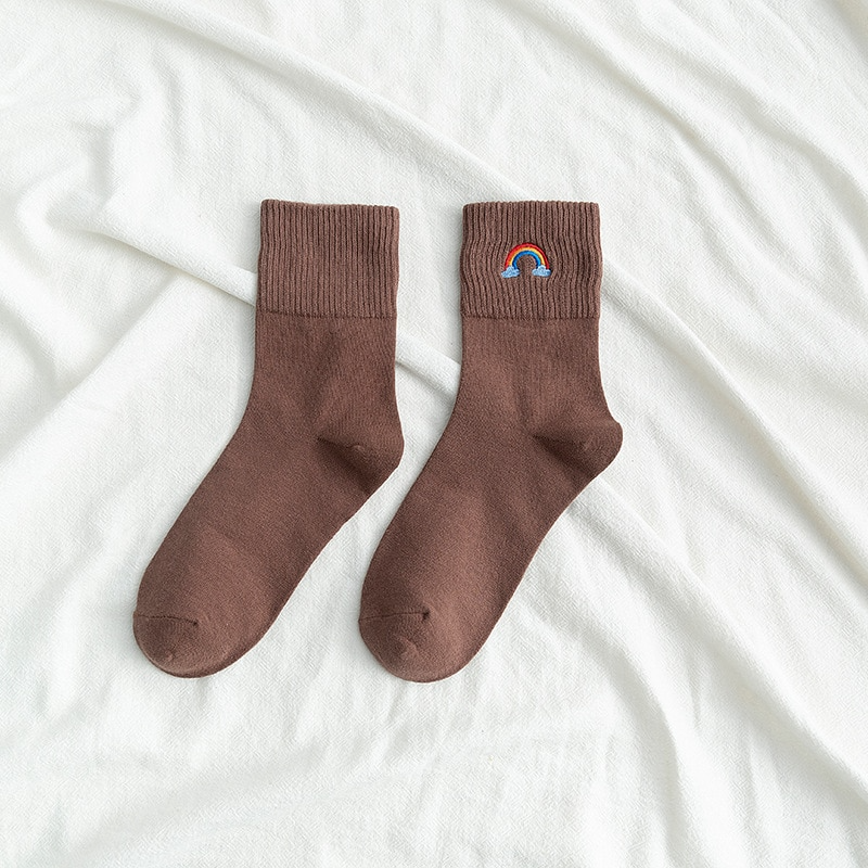 Ribbed socks with cute embroidered rainbow detail on the ankles. Will fit up to a size 39