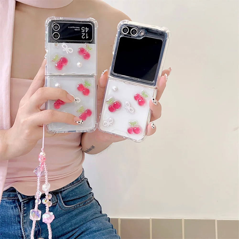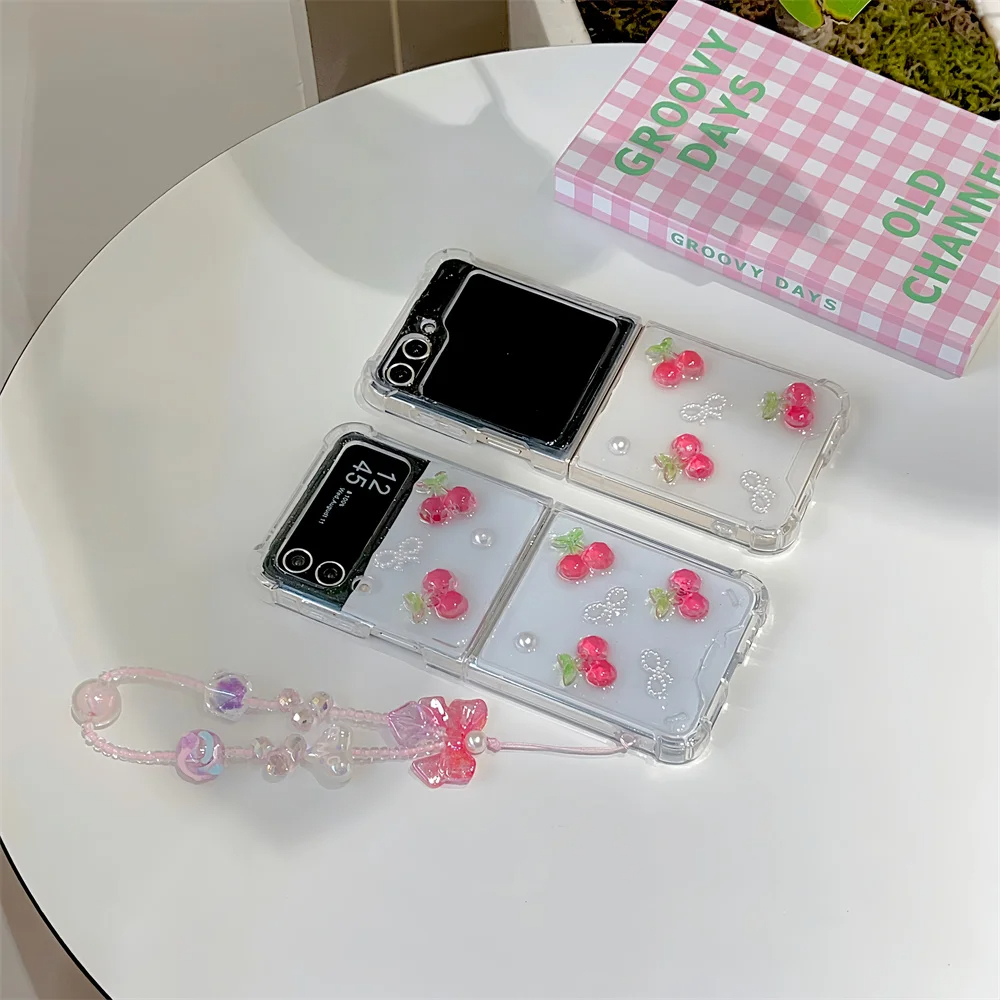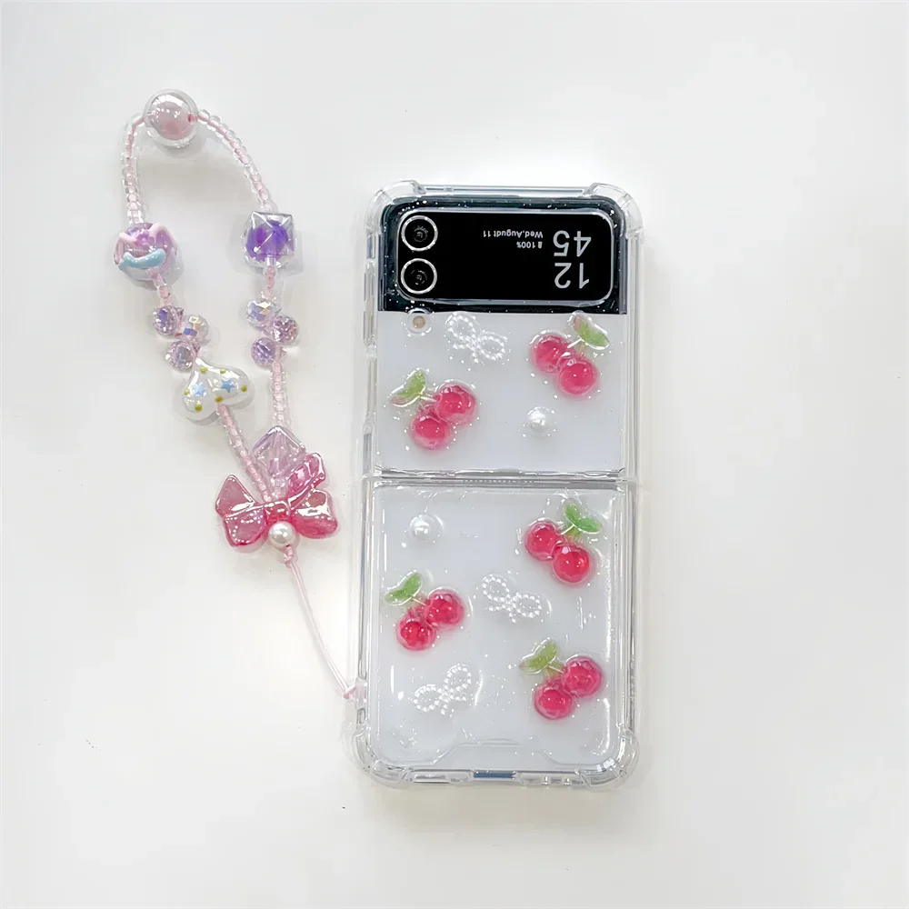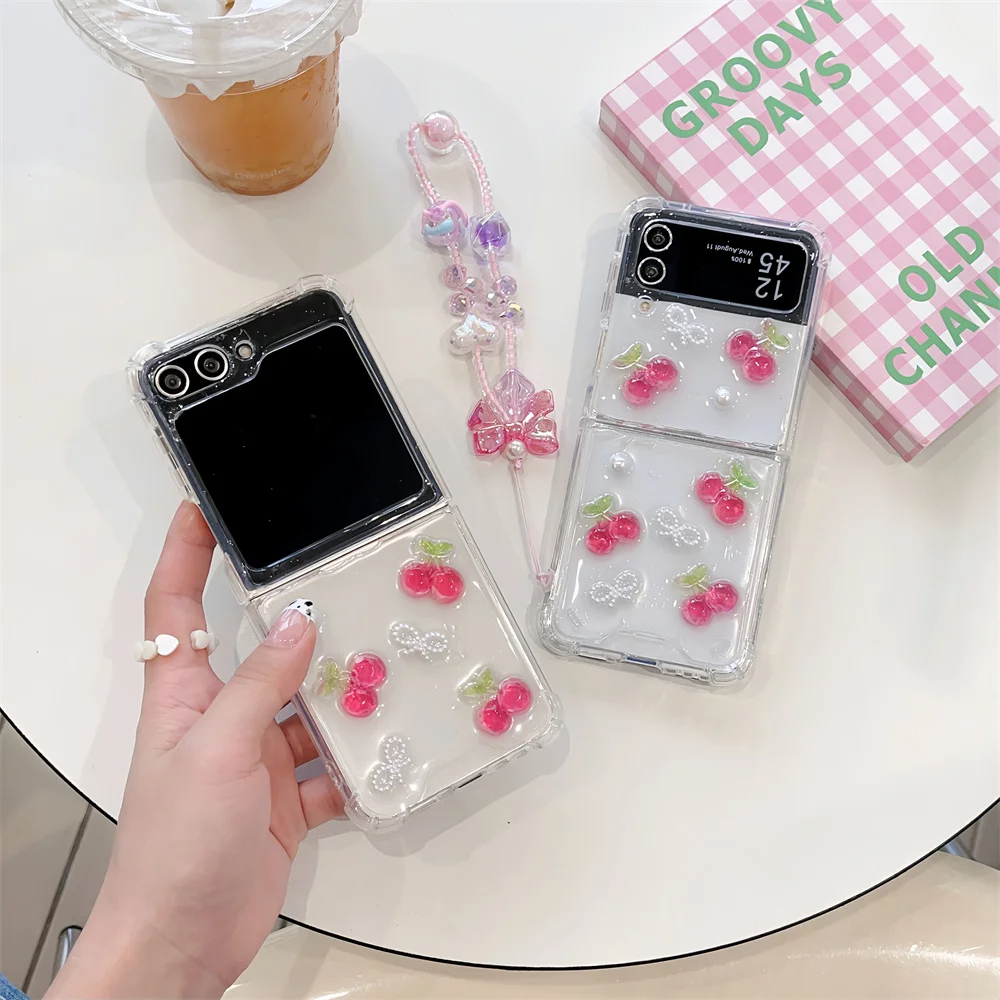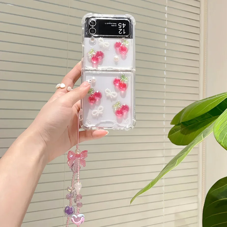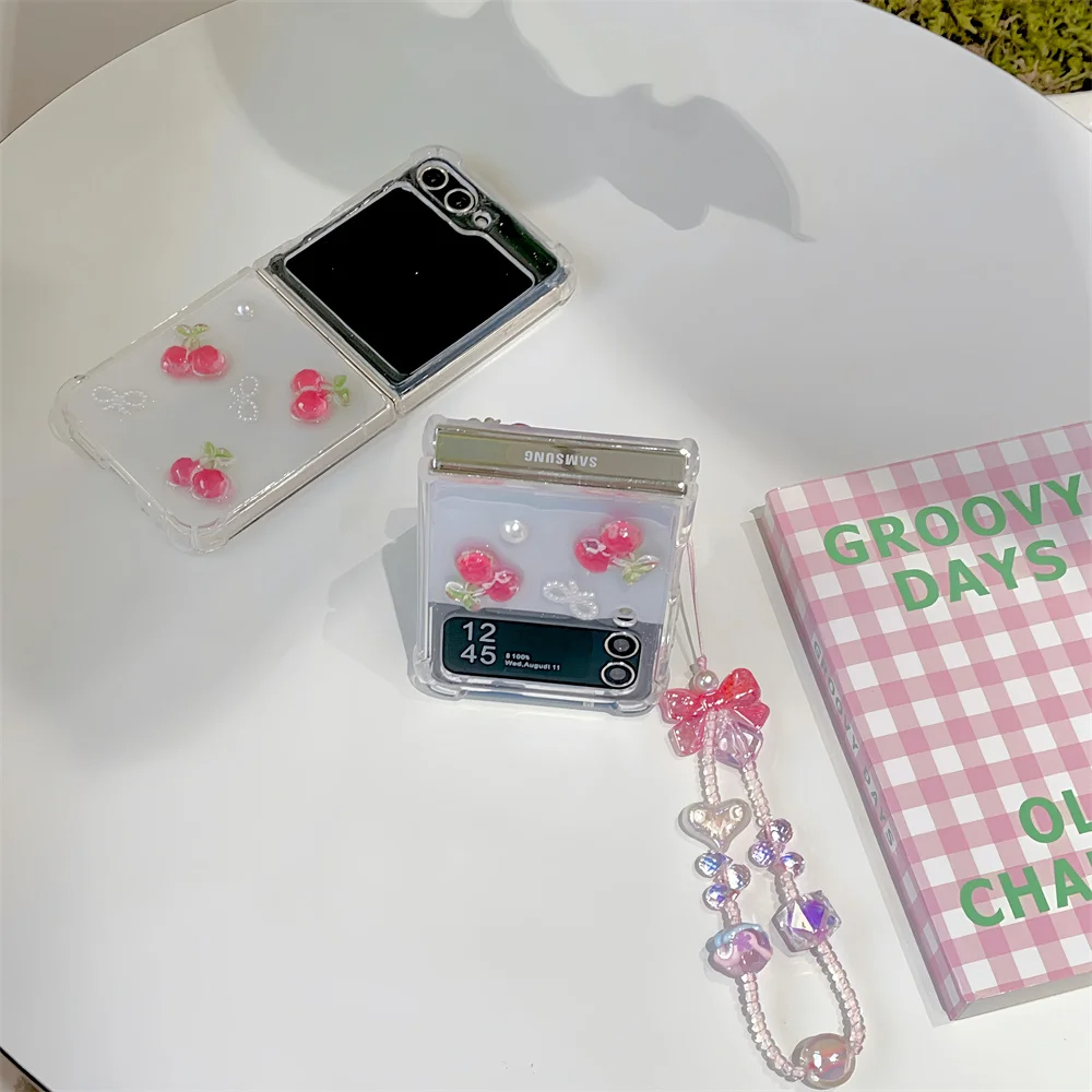 Resin Cherries and Pearl Bows Galaxy Z Flip Phone Case
