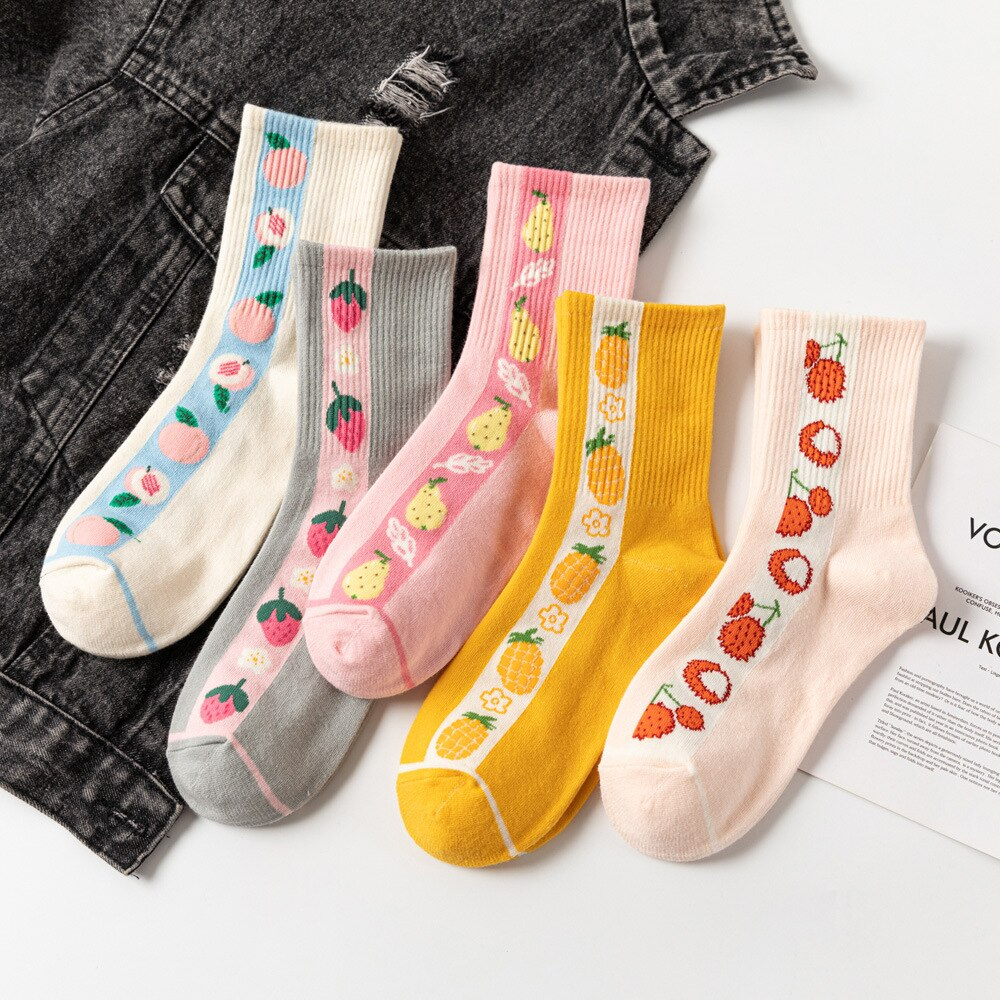 Ribbed Fruit Crew Socks (5 Designs)