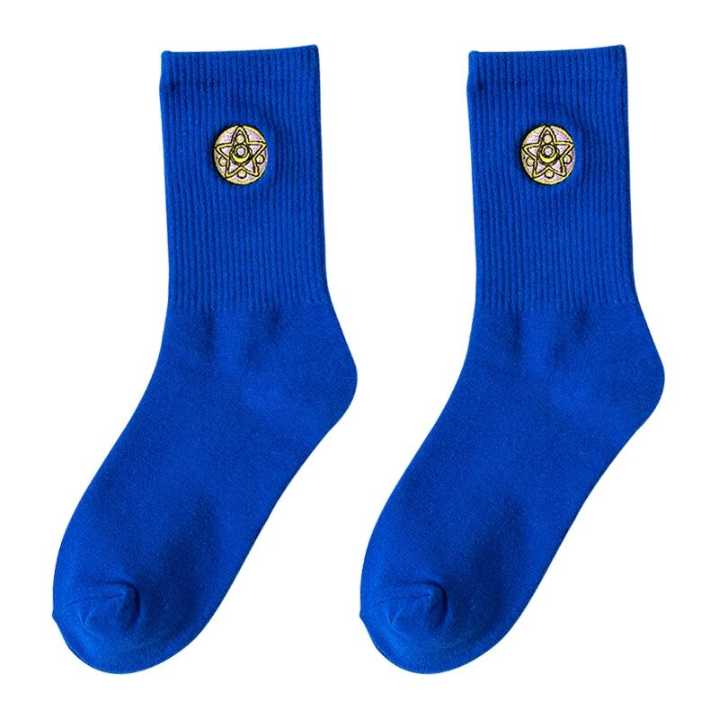 Ribbed socks with cute embroidered Sailor Moon icons on the ankles, 10 different colours and designs. Will fit up to a size 39.