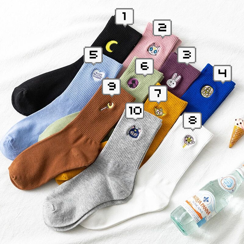Sailor Moon Embroidery Crew Socks (10 Designs)