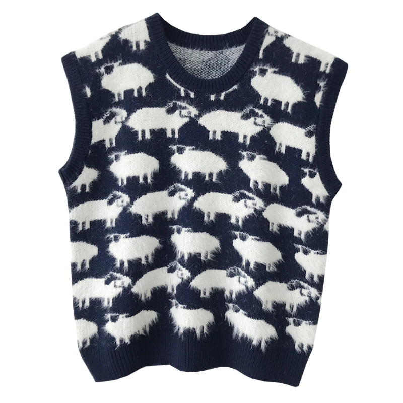 Cover your torso with some cozy style! This Sheep Knit Vest is perfect for a fun and fashionable addition to any outfit. The allover white sheep pattern is cute and unique, making sure you stay looking sharp and cozy all day long!