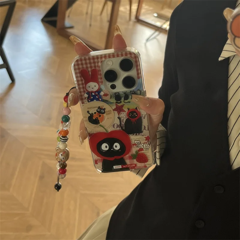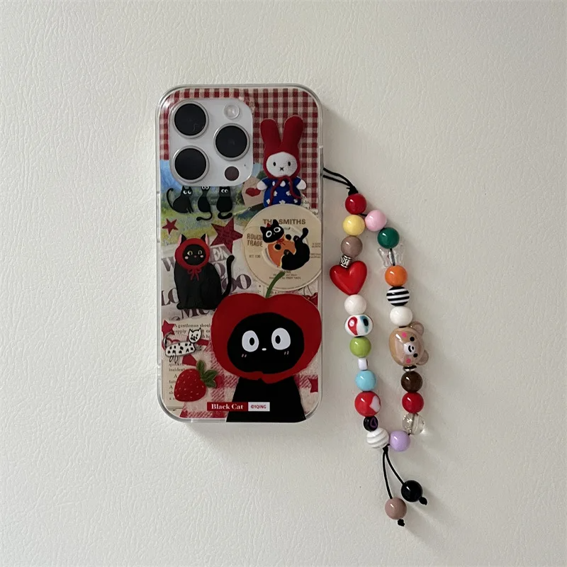 Safeguard your phone with a touch of feline charm. This adorable case showcases a scrapbook style collage of playful black kitty illustrations, making it the purr-fect accessory for any cat lover. For an added paw-some touch, choose to include an adorable beaded charm strap. With this case, you can embrace a fun and fruity vibe while keeping your phone safe and stylish. Let your inner cat lady shine with this whimsical and unique phone case.