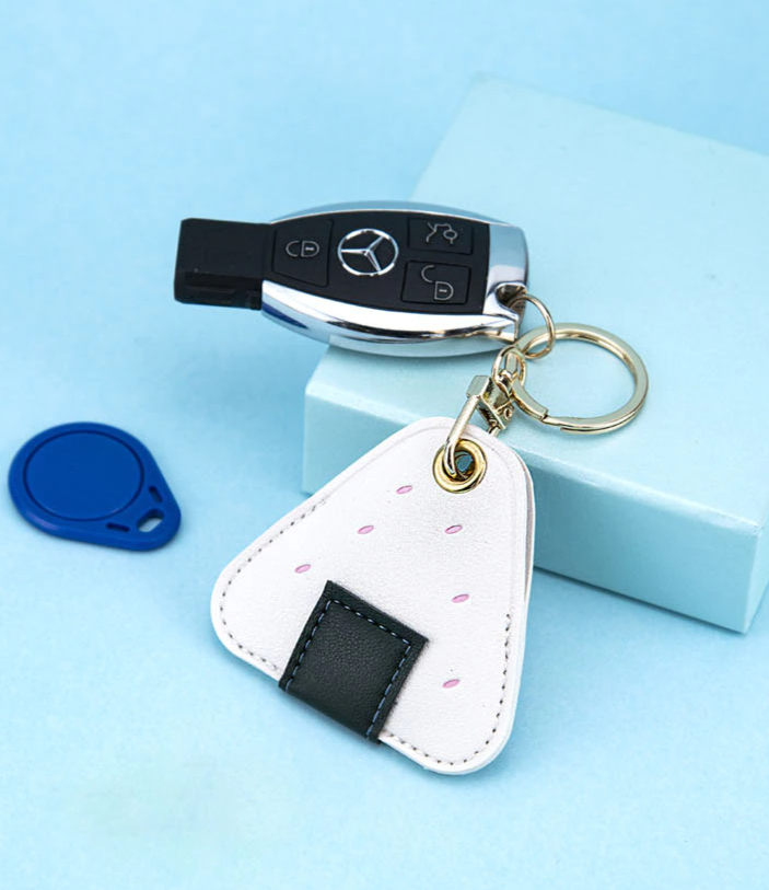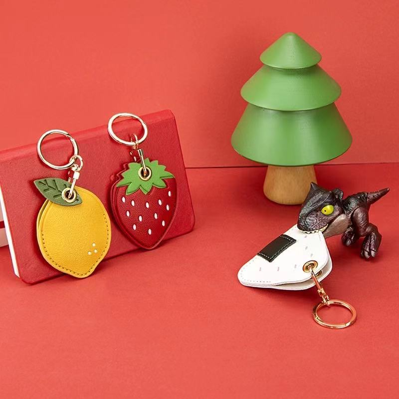 Cute embroidered keychain with a secure pouch for putting key or tracker tags in - never lose your keys again! Available in strawberry, lemon, and onigiri shape, 7x5,5CM big.
