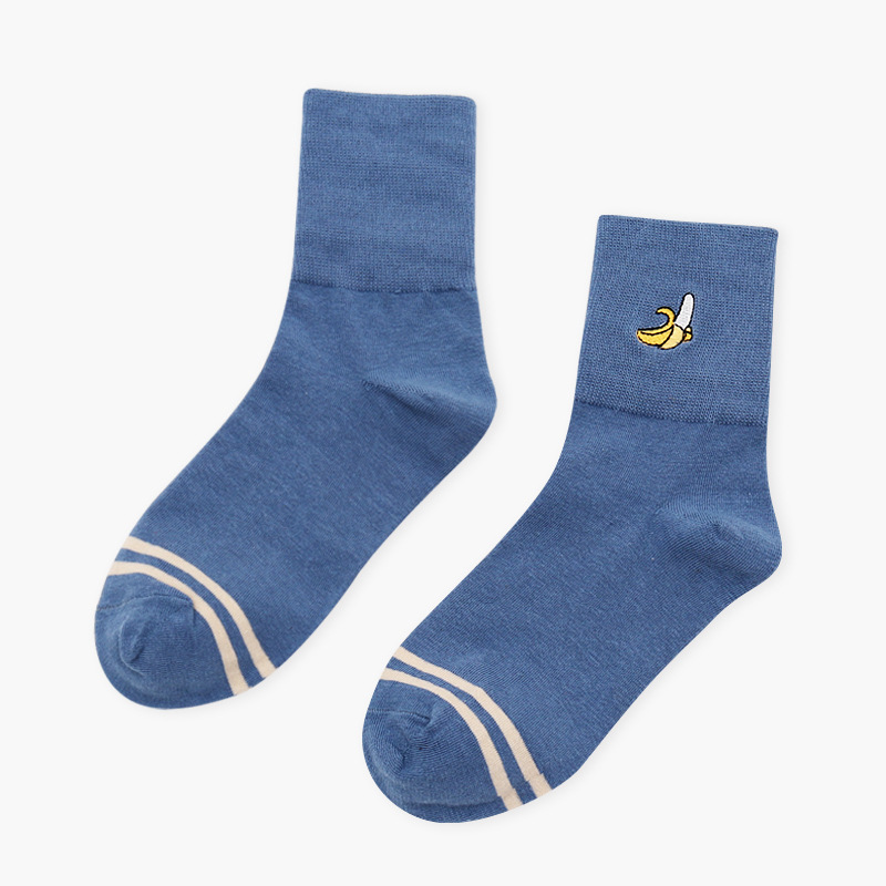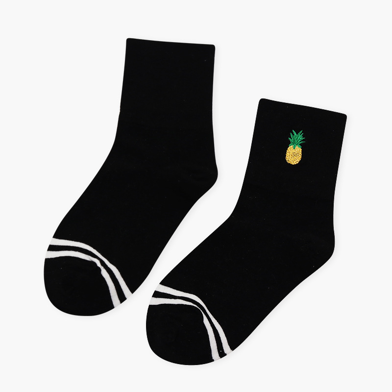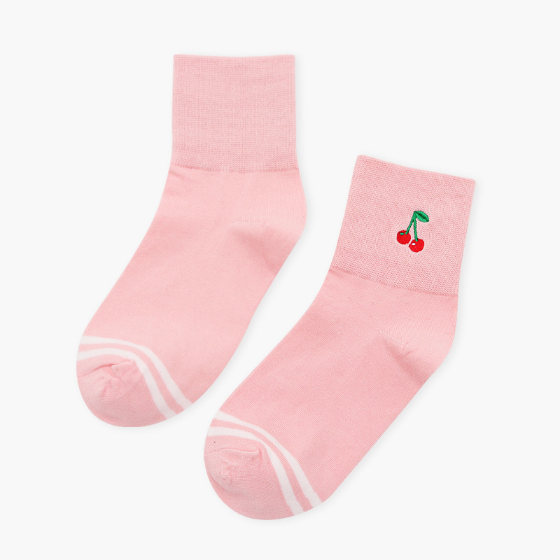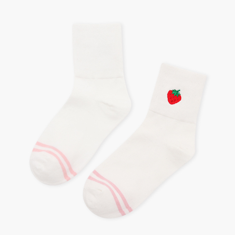 Striped Fruit Embroidery Crew Socks