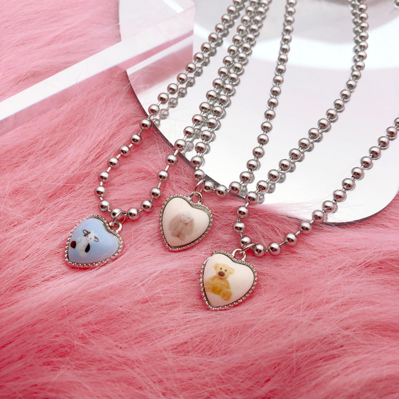 Be cuddle-ific wearing the Stuffed Animal Heart Necklace! It's a y2k-inspired ballchain necklace with a whimsically 3D heart pendant - pick your favorite stuffed animal: cow, teddy bear, or bunny! Guaranteed to give your look an adorably hug-able boost!