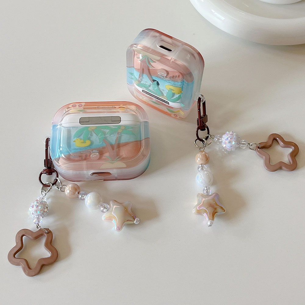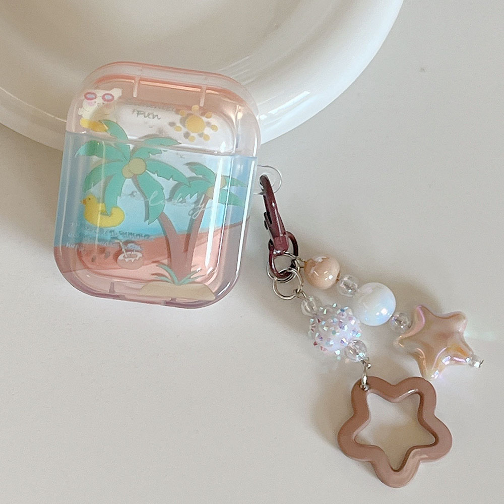 Say aloha to summer with this playful palmtree AirPods case cover that'll add a tropical twist to your tech! The protective cover comes with a tropical brown clasp and a beaded charm strap complete with a star and faux pearl charm. Beach vibes guaranteed - even if the only sand you'll be seeing is of the sandbox variety. (AirPods charger case not included!)