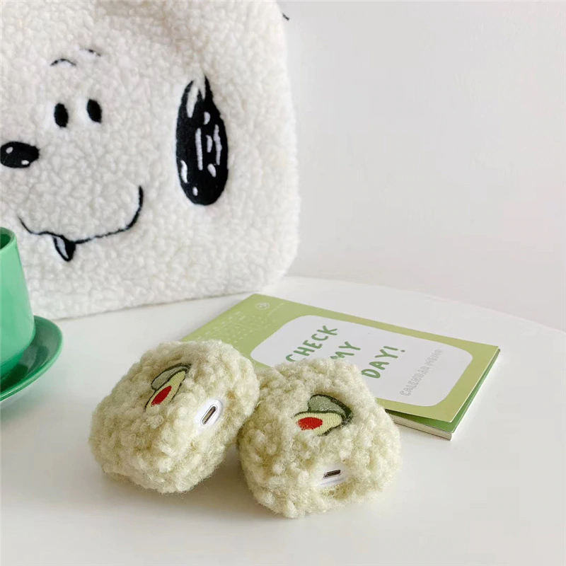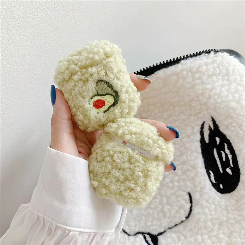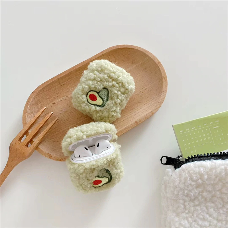 Cute fluffy protective cover for AirPod cases (AirPod charger case not included!) with avocado embroidery on the front! Available for AirPods 1/2