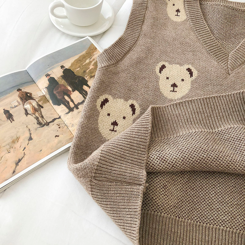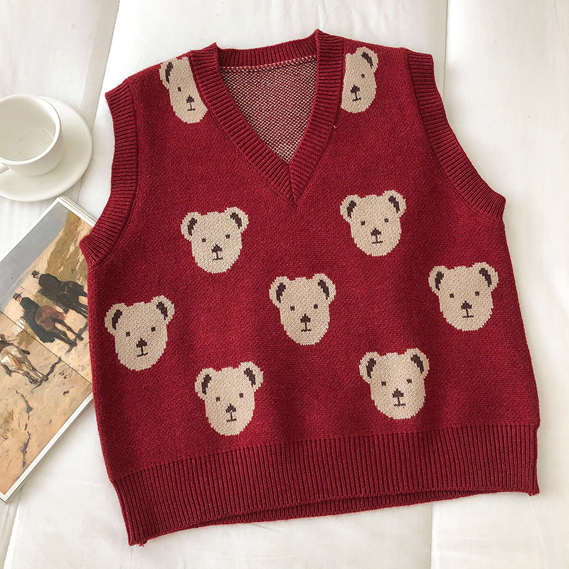 Say it with bears! Our cozy v-neck sweater vest has a sweet bear face knit into the pattern, making it the perfect pick for chill days. Stay warm and show your style with this bear-iffic vest. It's sure to make you the envy of all your furry friends!