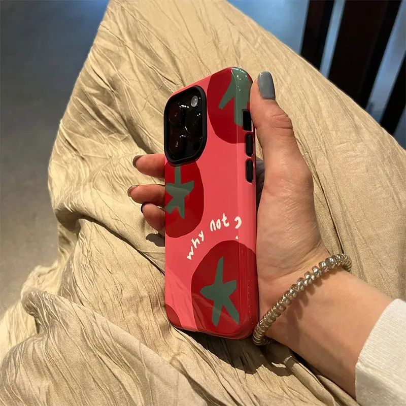 Bring some playful and quirky style to your phone with this Tomato iPhone Case! The fun tomato illustration and the playful phrase "Why not?" will make your phone stand out. Protect your phone in style and add some five a day to your day.