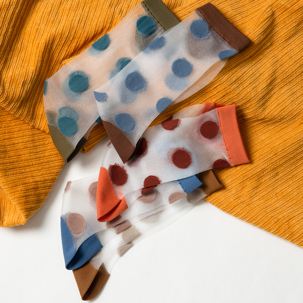 Sheer socks with allover dot pattern available in five different colours! Will fit up to a size 39.
