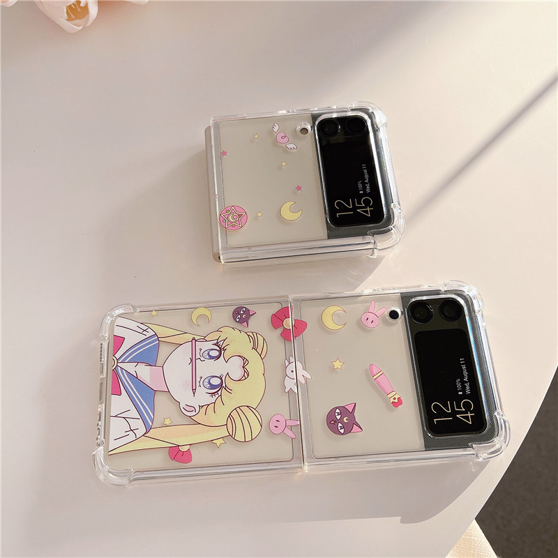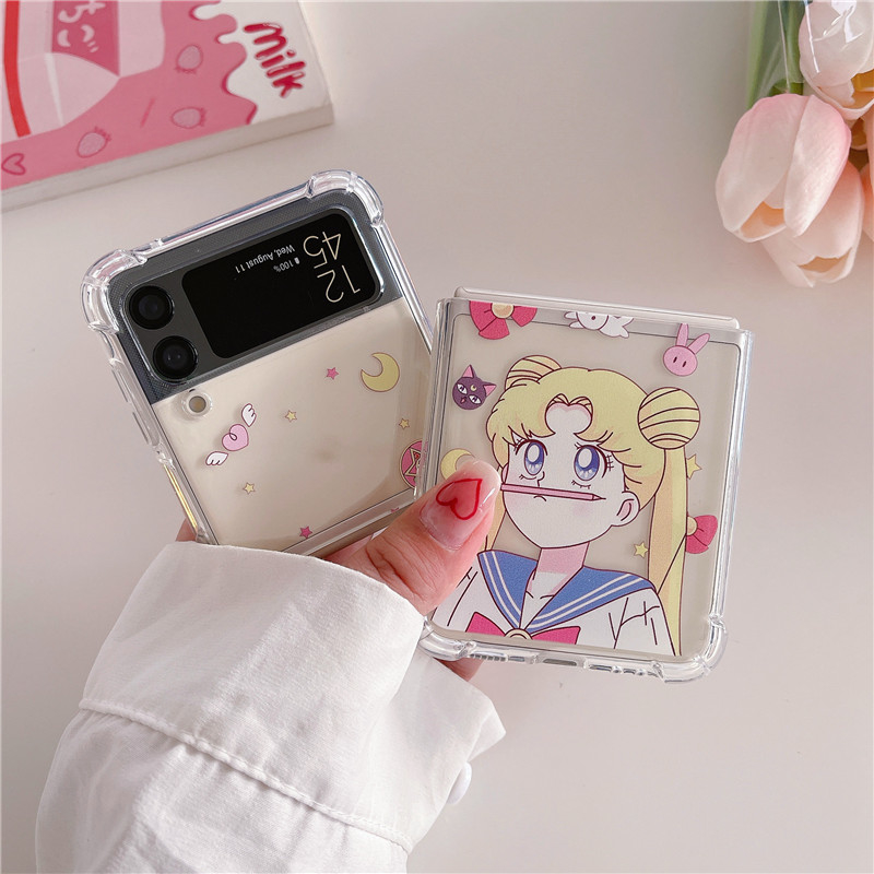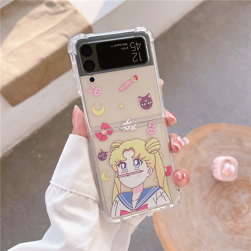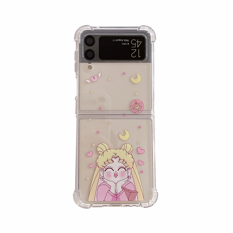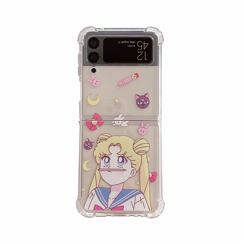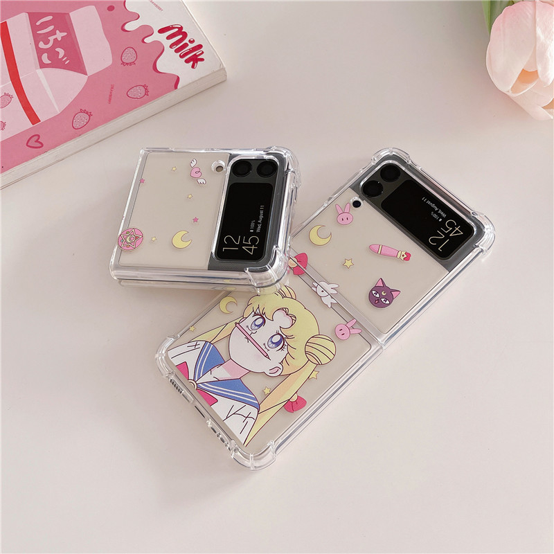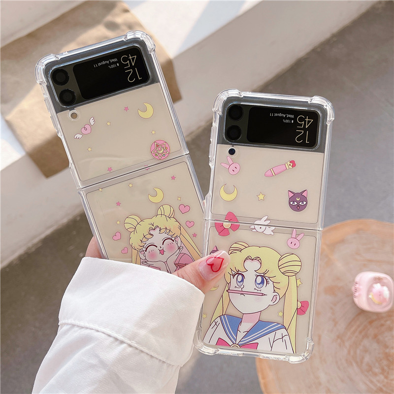 Foldable phone case for Samsung Galaxy Z Flip 3 phones with Usagi from Sailor Moon, available in two different designs.