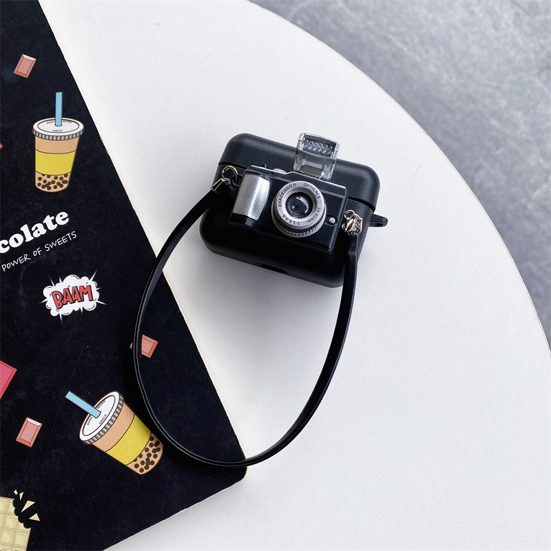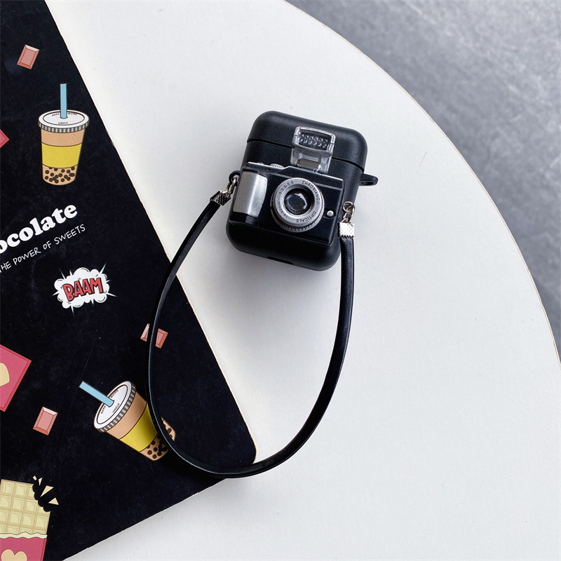 Cute soft protective cover for Airpod 1/2 and Airpods Pro cases (Airpod charger case not included!) with clip loop, in vintage style camera design!